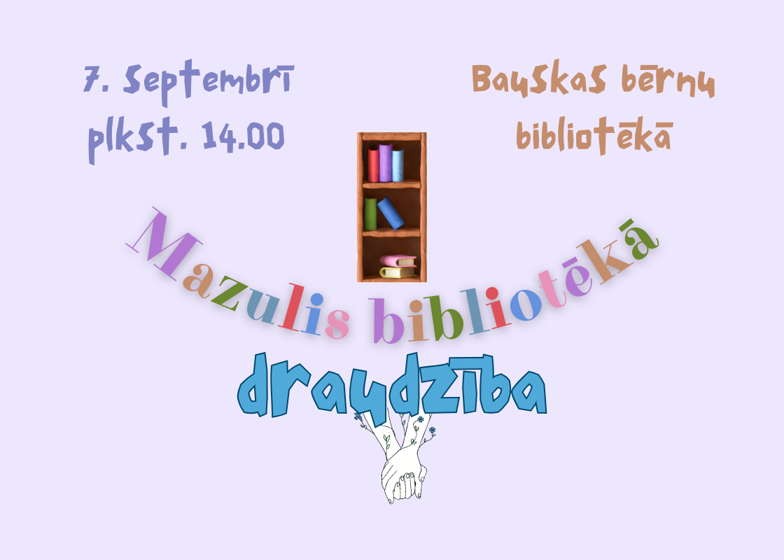 2024. gada 7. septembrī plkst. 14.00 Bauskas Bērnu bibliotēkā gaidīsim pirmsskolas vecuma bērnus uz radošu nodarbību "Mazulis bibliotēkā. Draudzība".