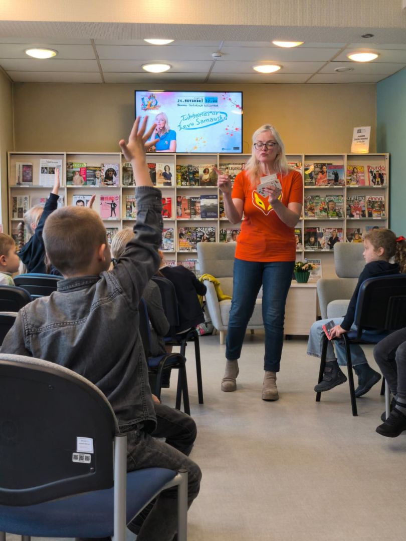 2025. gada 24. novembrī Bauskas Centrālās bibliotēkas lasītavā valdīja īpaša rosība - iemīļotās bērnu grāmatu autores Ievas Samauskas un Bauskas Valsts ģimnāzijas pirmklasnieku tikšanās. Rakstniece klātesošos iepazīstināja ne vien ar savu plašo grāmatu klāstu, bet arī pastāstīja par sevi un savu ģimeni, parādot, ka rakstnieks smeļas iedvesmu tieši sev apkārt esošajos cilvēkos un notikumos. Īpašu azartu pasākumā ienesa kopīga mīklu minēšana no autores dzejas mīklu grāmatām. Izrādījās, ka atrast pareizās atbildes nemaz nav tik vienkārši – tas bija īsts izaicinājums, kas prasīja gan attapību, gan uzmanību, taču sagādāja daudz prieka un jautrības. Pateicamies Ievai Samauskai par sirsnīgo tikšanos un bērniem par aktīvo līdzdarbošanos!