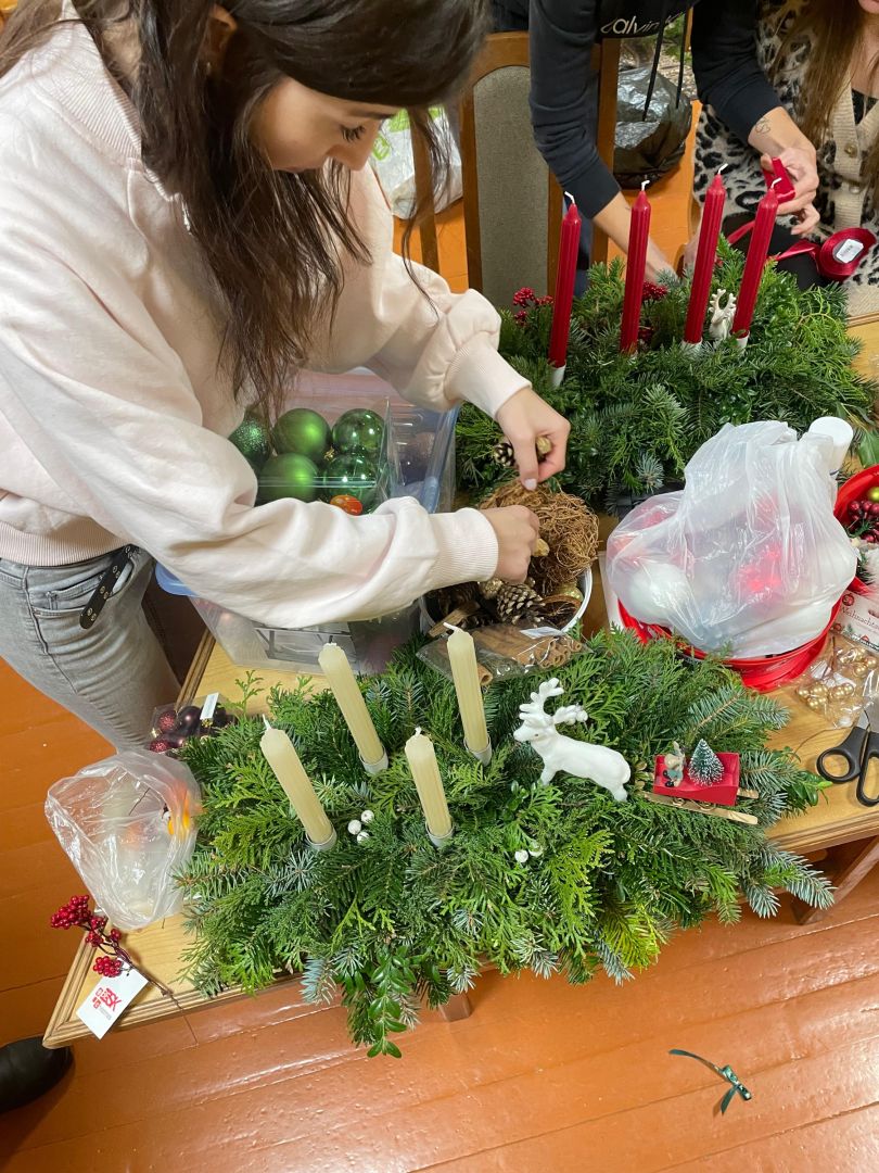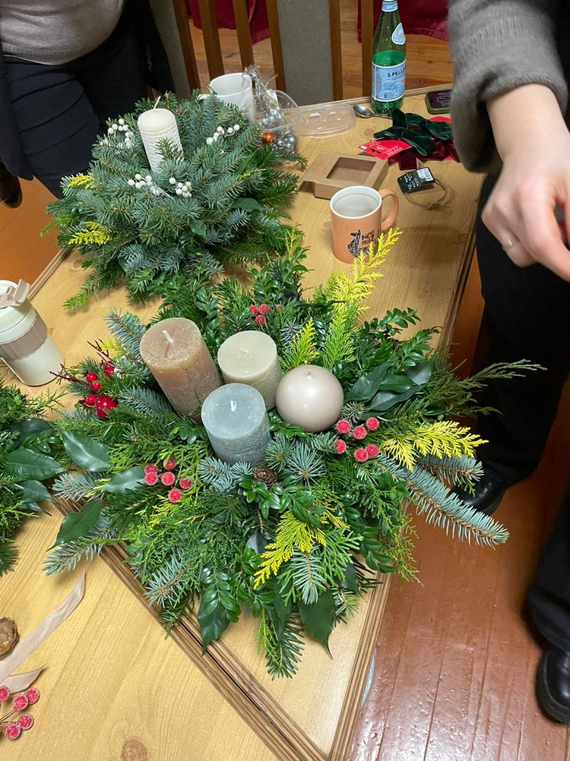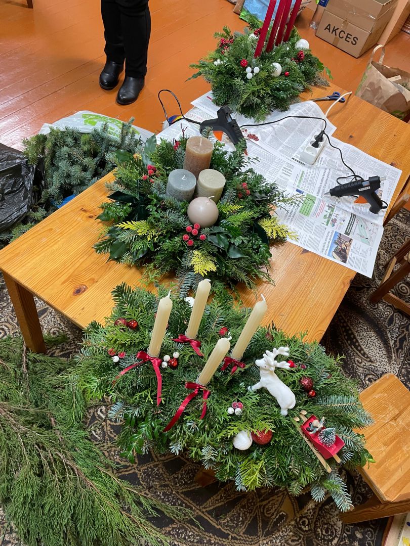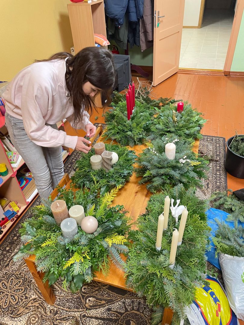 Kad vainagi bija sataisīti, bija laiks tos rotāt. Arī pie rotāšanas tika paskaidrots, kā piemeklēt pareizākās krāsas dekorus, sagādātajām svecēm, lai vainagi nebūtu pārlieku raibi un būtu saskanīgi.