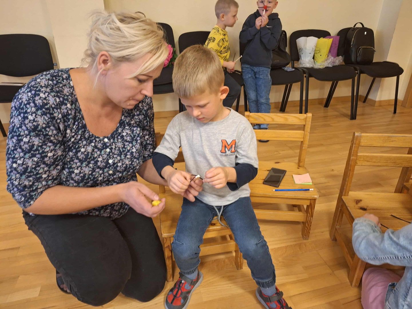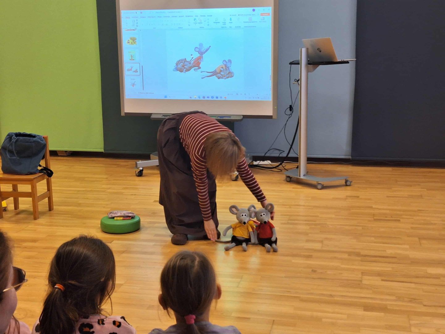 Autore bērnus iepazīstināja ar sevi un pastāstīja, kas tad īsti bija Koko, kā tas satikās ar Riko un kā tapa pirmie stāsti par abiem draiskajiem žurkuļiem. Bērni uzzināja, ko žurku puiši salika savā skolas somā un palīdzēja arī autorei sašķirot viņas somas saturu. Tad vēl paslēpes ar Koko un Riko! Lai kļūtu vēl labāki draugi žurkuļiem, mazie apmeklētāji arī praktiski padarbojās - izgatavoja sev joku žurciņu deguntiņus un ūsas!