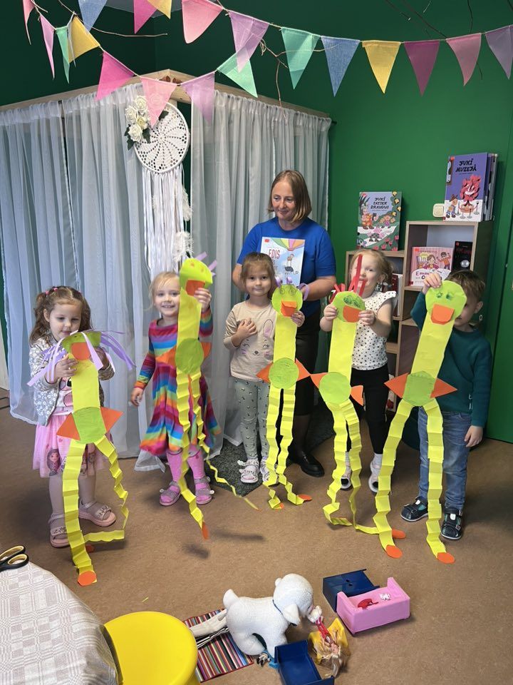 2025. gada 24. oktobrī Bērsteles bibliotēku apciemoja vietējās pirmsskolas trīs un četrus gadus vecie bērni. Bibliotēkas stundā tika lasīta K. Mazurovas grāmata "Edis mācās lidot". Protams, tika pārrunāts  grāmatā izlasītas un arī kārtīgi pavingrots,  bet vislielāko prieku šoreiz sagādāja konstruēšanas nodarbība. Tās laikā bērni ar skolotāju un bibliotekāres palīdzību izgatavoja katrs savu papīra strausu. Darbs nebija viegls, bet rezultāts mazos apmeklētājus ļoti iepriecināja.