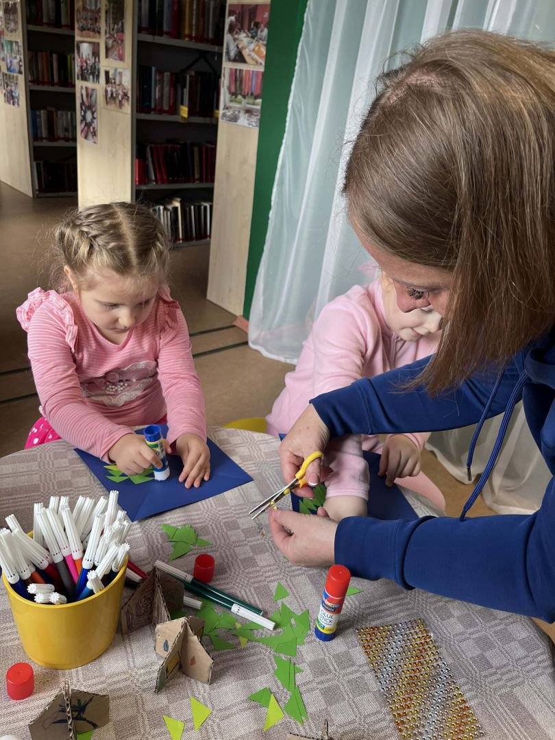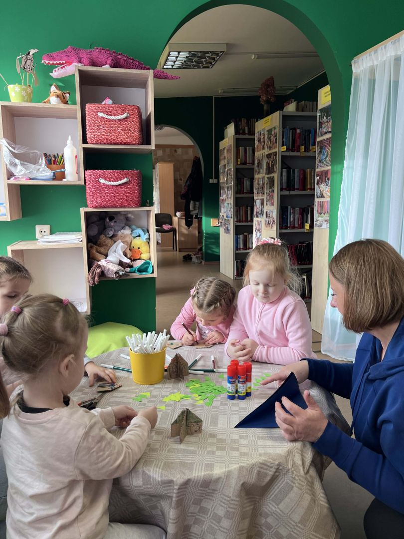 Tika lasīta G. Īstonas grāmata "Māja ar mazām sarkanām durvīm" - burvīgs stāsts par laipnību, draudzību un piederības sajūtu. Grāmata raisīja ļoti daudz patiesu emociju un rosināja arī darboties - gatavot Olīvijas draudzenei Pelei visskaistāko māju mežā.