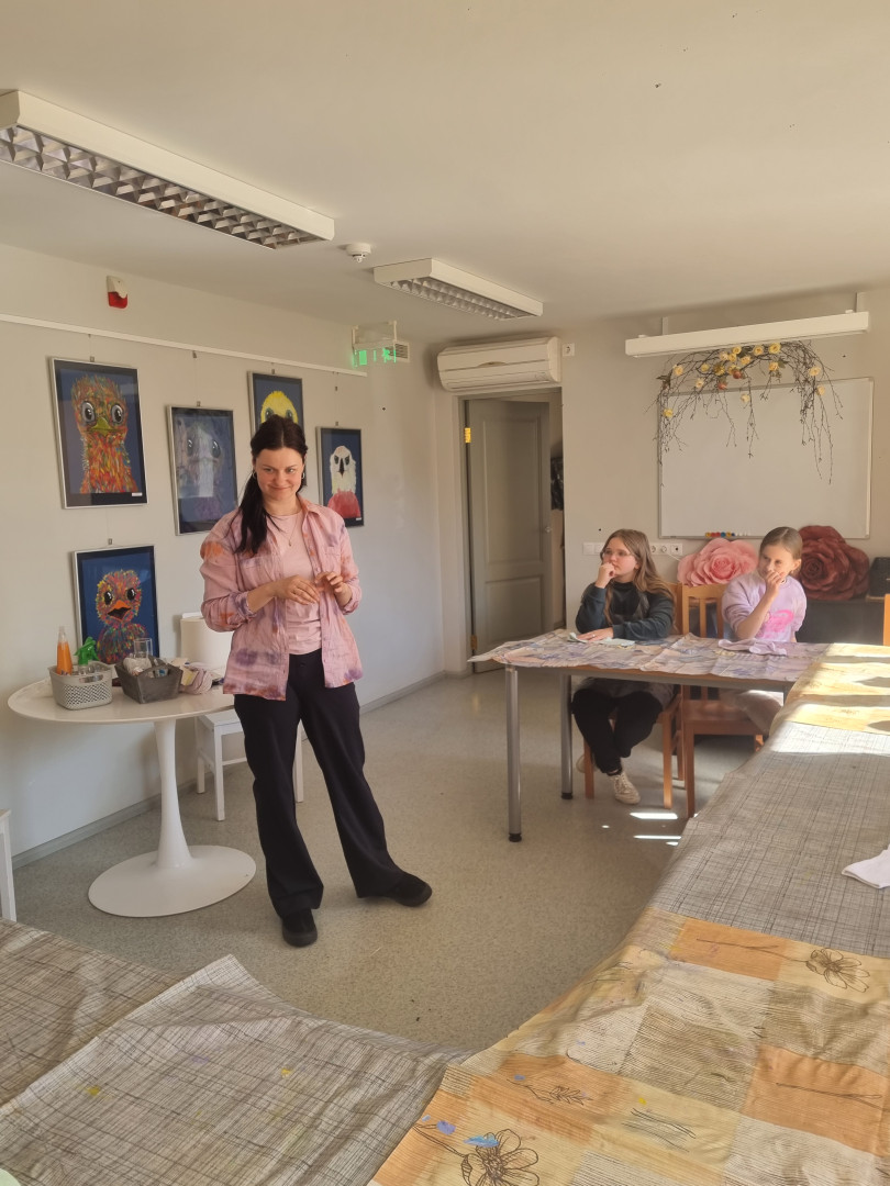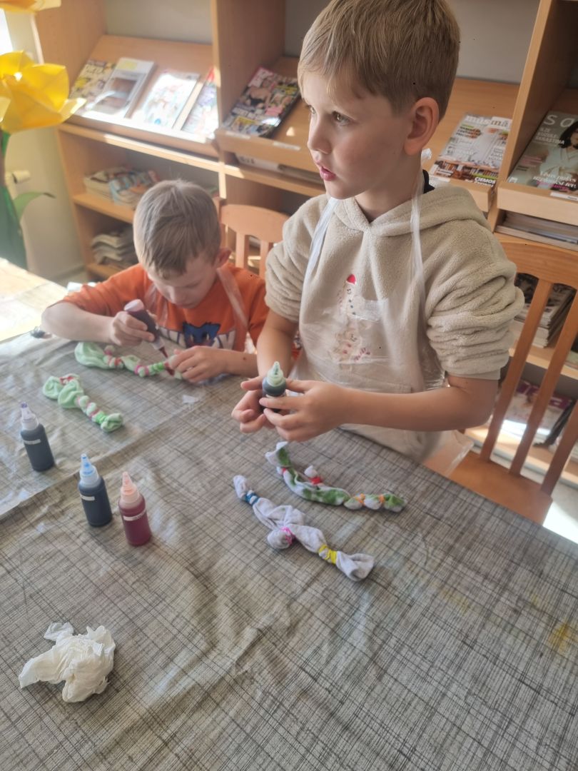 Nodarbība bija aizraujoša un interesanta, jo Agnese ne tikai rādīja, bet arī pastāstīja par batikošanas veidiem, dažādiem apģērbiem ko vēl var batikot, un vēl bērni uzzināja, ka batikošana ir ilgtspējīgs veids kā saglabāt nolietotu apģērbu, piešķirot tam jaunas krāsas un individualitāti. Azarts redzēt rezultātu pārņēma kā Lieldienās krāsojot olas. Katram zeķes izdevās košas, stilīgas un tik dažādas!