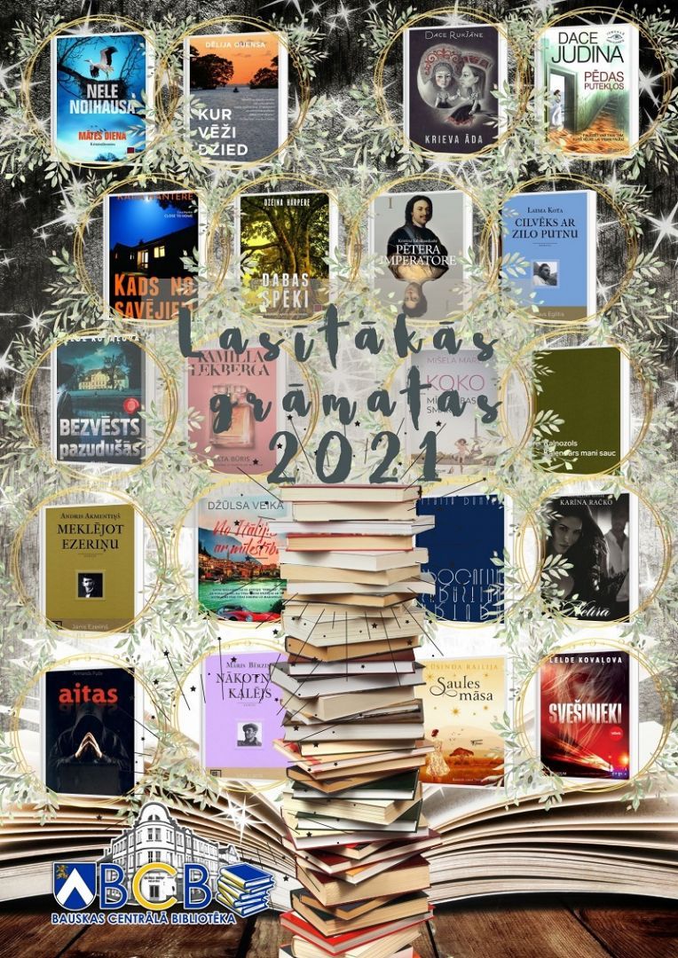 2021. gads Bauskas Centrālajā bibliotēkā ir bijis grāmatām bagāts un arī mūsu apmeklētāji bijuši čakli lasītāji. Apkopojot gada rezultātus, esam atlasījuši divdesmit gada lasītākās grāmatas. Ja arī Tevi kāda no šīm grāmatām ir ieinteresējusi, aicinām grāmatas pirms bibliotēkas apmeklējuma rezervēt, izmantojot elektronisko katalogu vai telefonu 63960580, kā arī rakstot e-pastā abonements@bauskasbiblioteka.lv.
