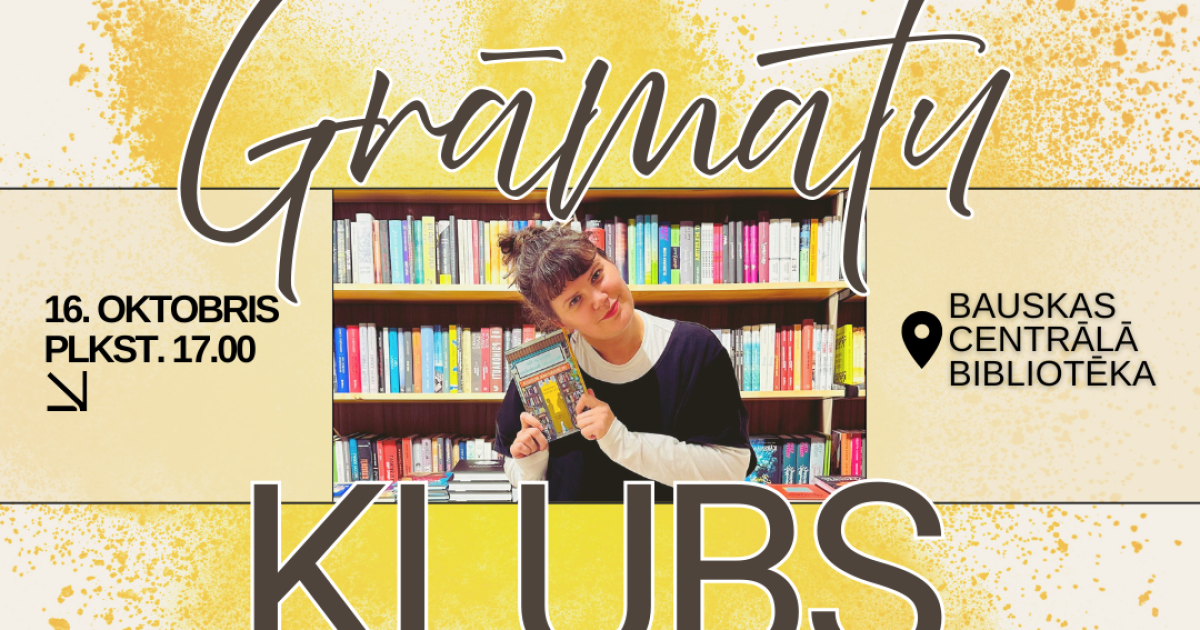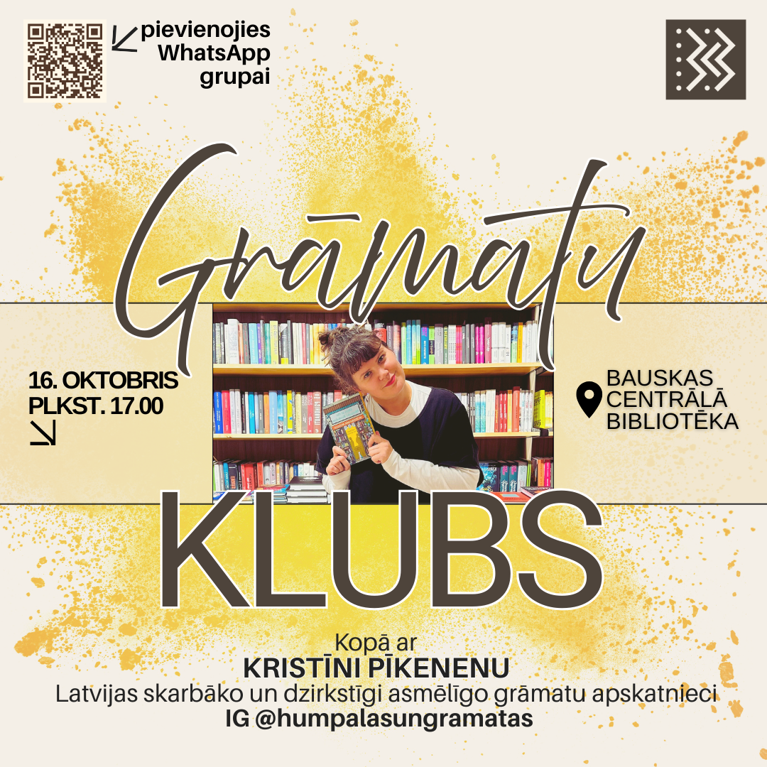 2025. gada 16. oktobrī plkst. 17.00 lasītmīļi tiek aicināti uz Bauskas Centrālo bibliotēku, lai tiktos Grāmatu klubā.