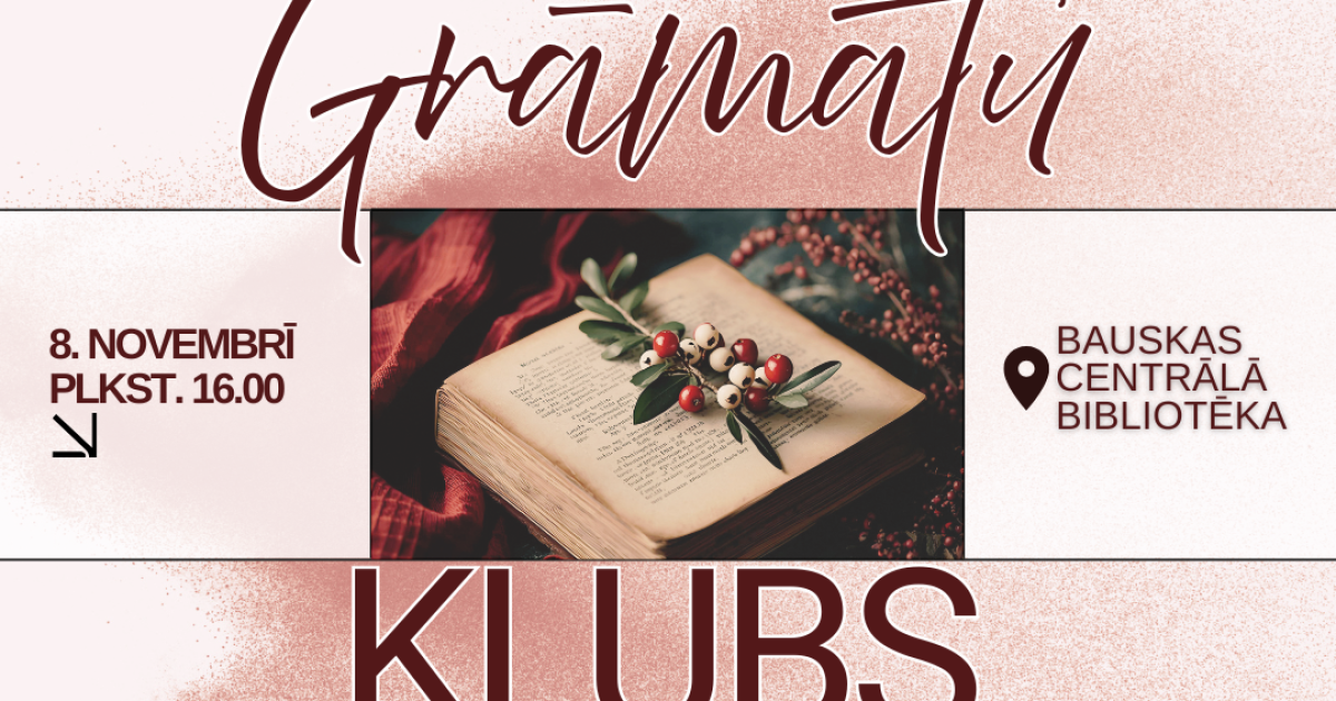 2025. gada 8. novembrī plkst. 16.00 literatūras mīļotāji aicināti tikties Grāmatu klubā Bauskas Centrālajā bibliotēkā.