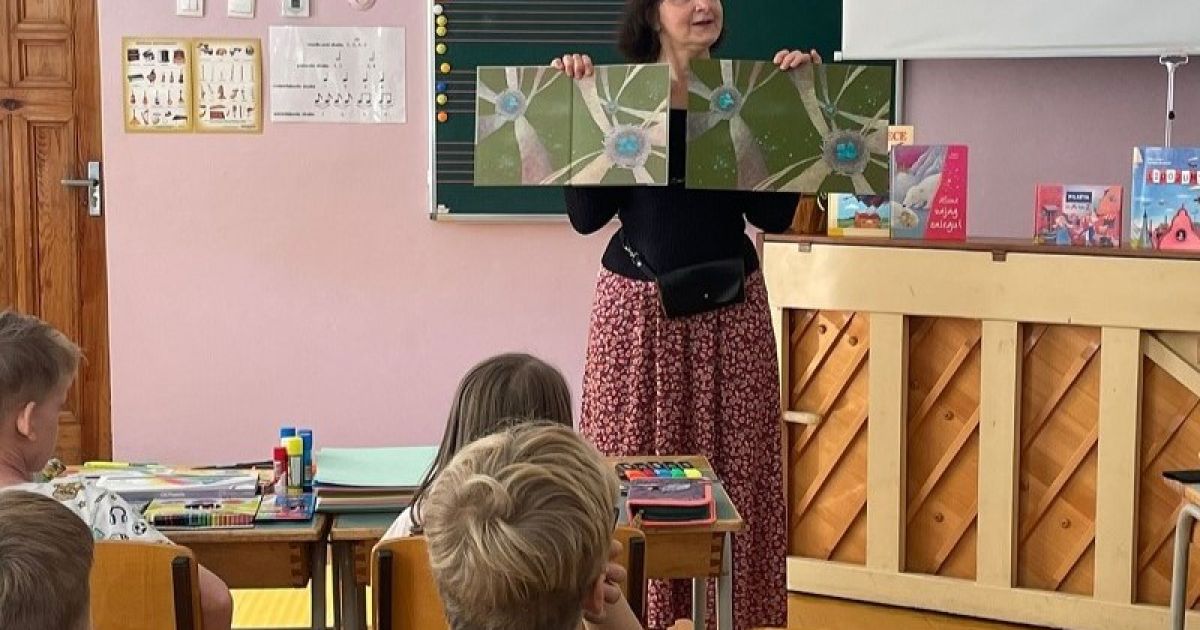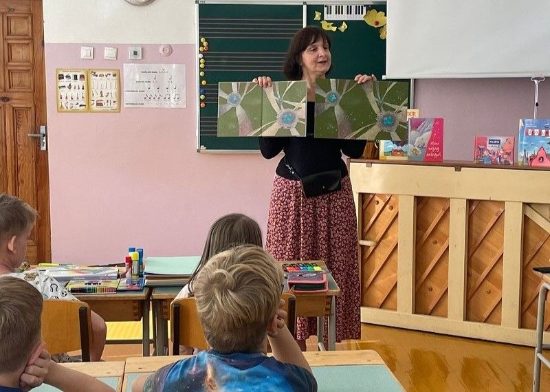 Gundega Muzikante 1. - 3. klases skolēnus iepazīstināja ar vairāku grāmatu ilustrāciju skicēm un pastāstīja, kāds ir process grāmatu ilustrēšanai. Viena no grāmatām bija Ineses Paklones dzejoļu krājums bērniem "Zvēru barošana", kā arī Juhani Pitsepa grāmata "Paulīnes sapņu mežs". Ilustratore parādīja savas ilustrāciju skices un ilustrācijas grāmatās, un aicināja bērnus atrast atšķirības. Bērniem bija iespēja redzēt, kā izskatās tipogrāfijā iespiesta grāmata, kas vēl nav sagriezta un iesieta.
