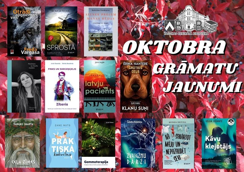 Klāt oktobris ar literatūras jaunumiem un jauno grāmatu dienu – sestdien, 14. oktobrī! Ir pienācis laiks, kad rudens vēji dzenā birstošās koku lapas, bet grāmatu mīļotāji šķir vienu lapu pēc otras un iegrimst interesantajā un aizraujošajā grāmatu pasaulē! Šis mēnesis bagātīgs ar grāmatām gan nozaru, gan ārzemju, gan latviešu autoru literatūrā, ko sarūpējušas bibliotēkas komplektēšanas meitenes. Tik tiešām - grāmata – tā ir dāvana, kuru var atvērt atkal un atkal!