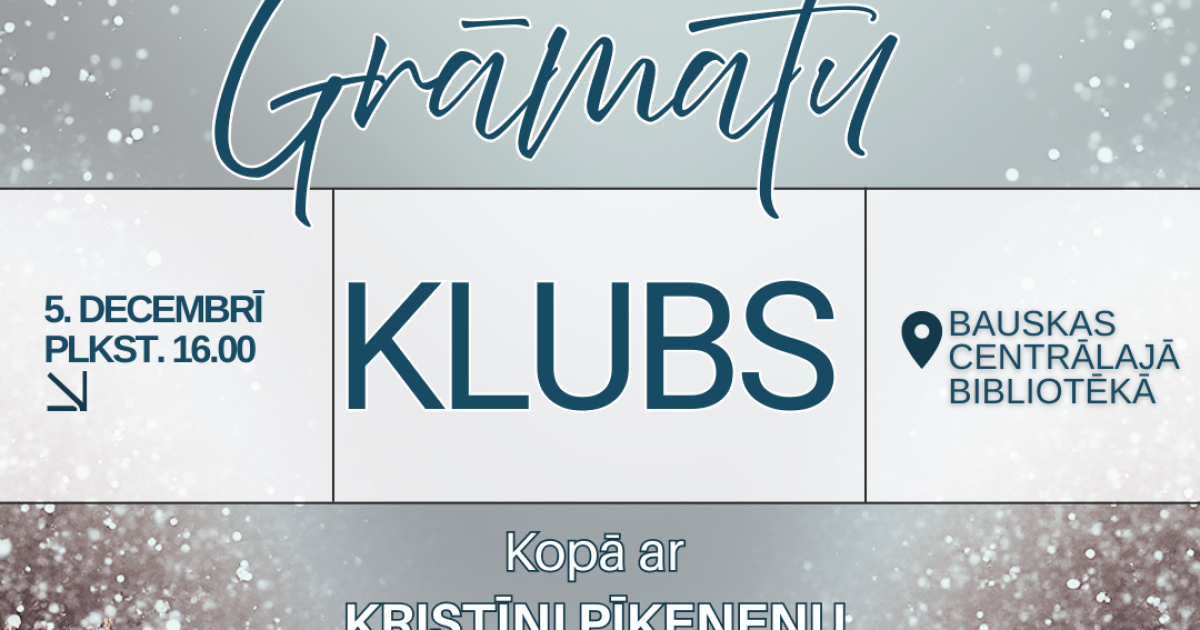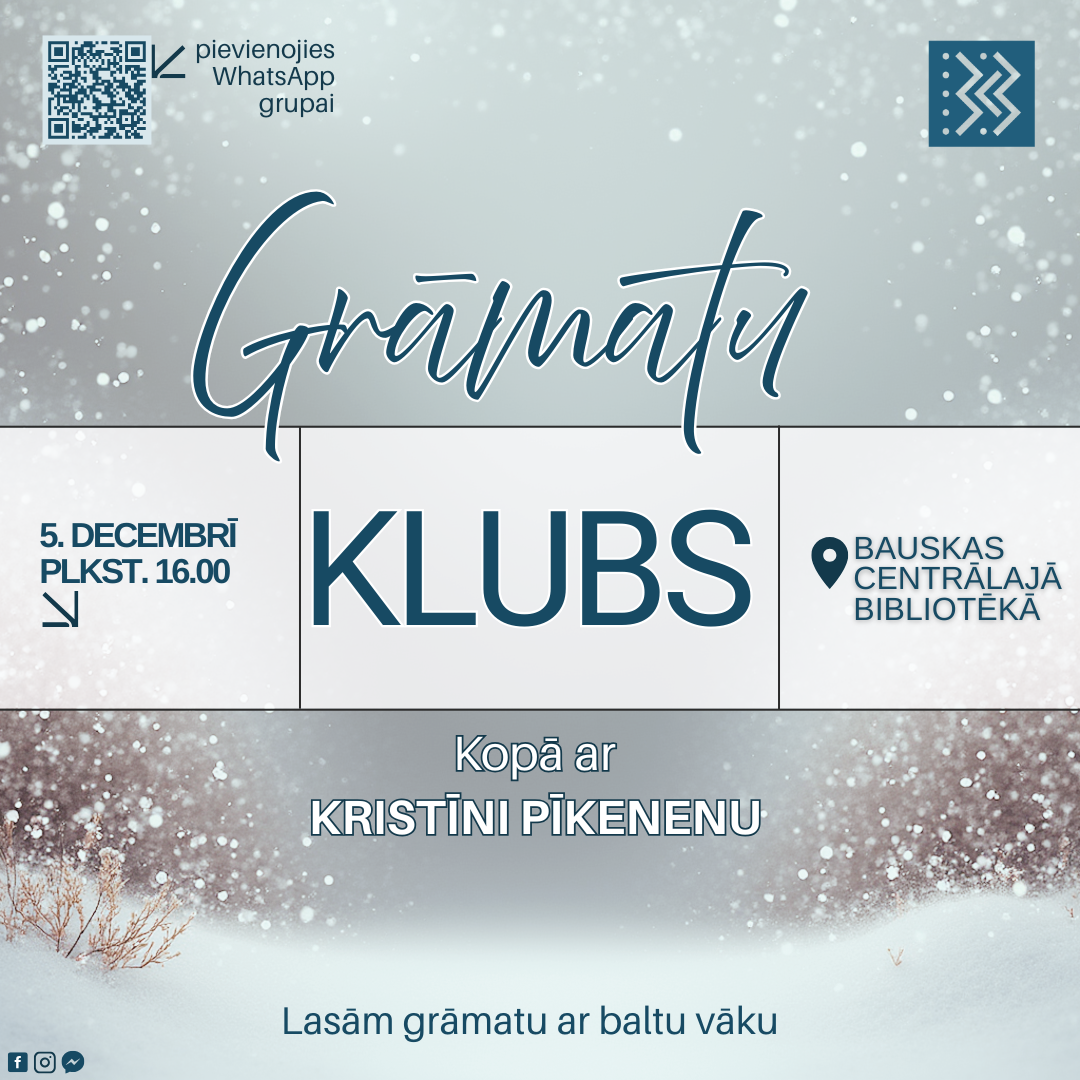 2025. gada 5. decembrī plkst. 16.00 grāmatu mīļotāji aicināti tikties Grāmatu klubā Bauskas Centrālajā bibliotēkā.