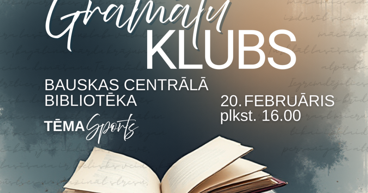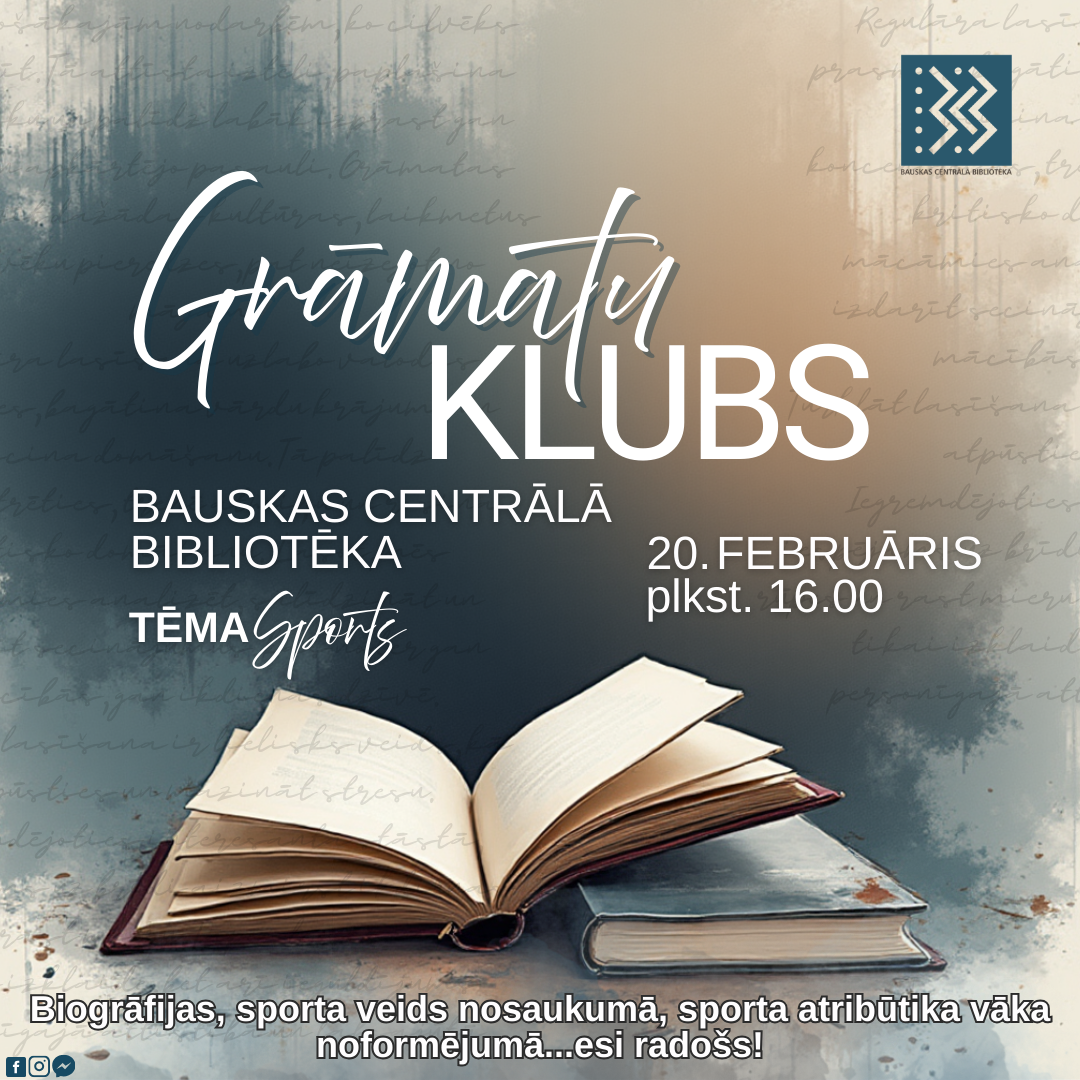 2026. gada 20. februārī plkst. 16.00 Bauskas Centrālajā bibliotēkā lasīt mīļotāji tiek aicināti uz ikmēneša tikšanos Grāmatu klubā, lai dalītos  iespaidos par izlasīto, diskutētu un baudītu patīkamu sarunu gaisotni.