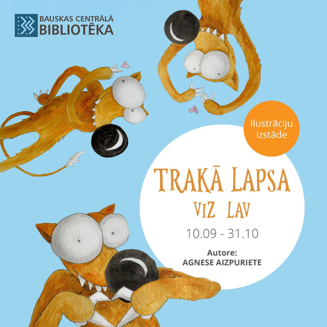 Izstāde aicina apmeklētājus ienirt spilgtajā un dzīvespriecīgajā Trakās Lapsas pasaulē. Trakā Lapsa – tēls, kas jau iekarojis gan bērnu, gan pieaugušo sirdis – ir pazīstams no apgāda "Zvaigzne ABC" izdotās grāmatu sērijas, filmu studijas "Rija" veidotajām animācijas filmām un galda spēles par atkritumu šķirošanu. Šis rudais blēņdaris iedvesmo ar savu neviltoto prieku un pasaules izzināšanas garu. Izstāde piedāvā unikālu iespēju ieskatīties Trakās Lapsas piedzīvojumos un apskatīt daļu no ilustrācijām, kas tapušas pēdējo desmit gadu laikā.