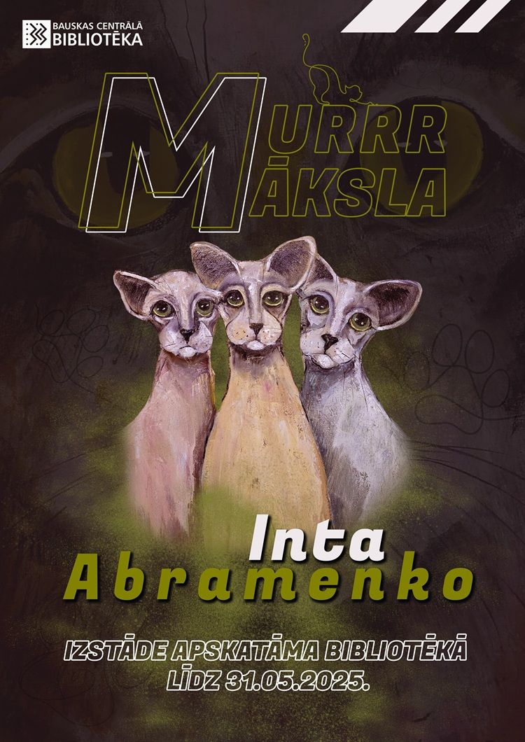 Bauskas Centrālajā bibliotēkā, kā arī pilsētvidē - uz planšetēm Kalna ielā - līdz pat maija beigām aplūkojama Intas Abramenko kaķu gleznu izstāde "MurrrMāksla".