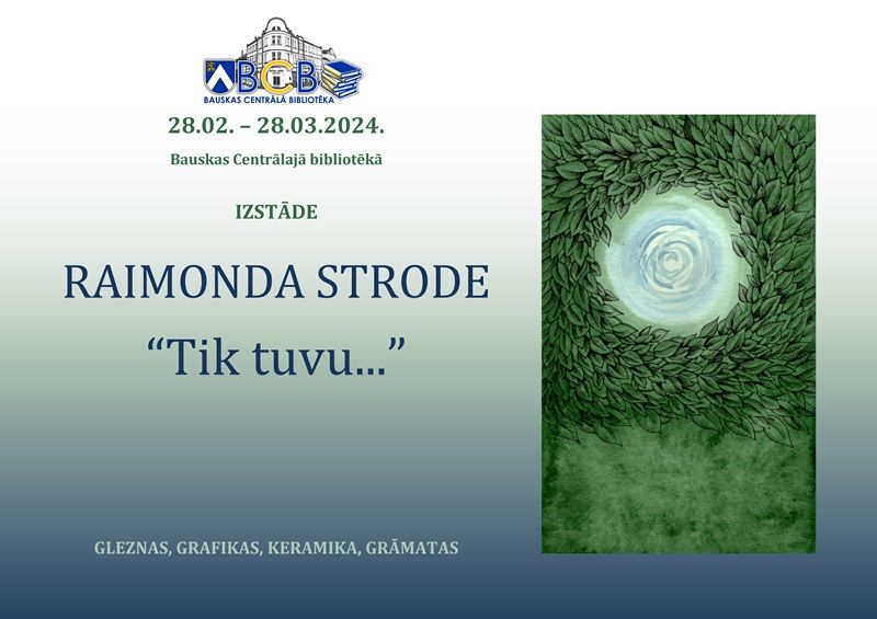 Bauskas Centrālā bibliotēka aicina ikvienu aplūkot mākslinieces Raimondas Strodes personālizstādi "Tik tuvu…", lai ar gleznu, keramikas, grafiku un grāmatu starpniecību iepazītu mākslinieces personību un padarītu savu dienu iespaidiem bagātāku! Izstāde bibliotēkā apskatāma līdz 28. martam.