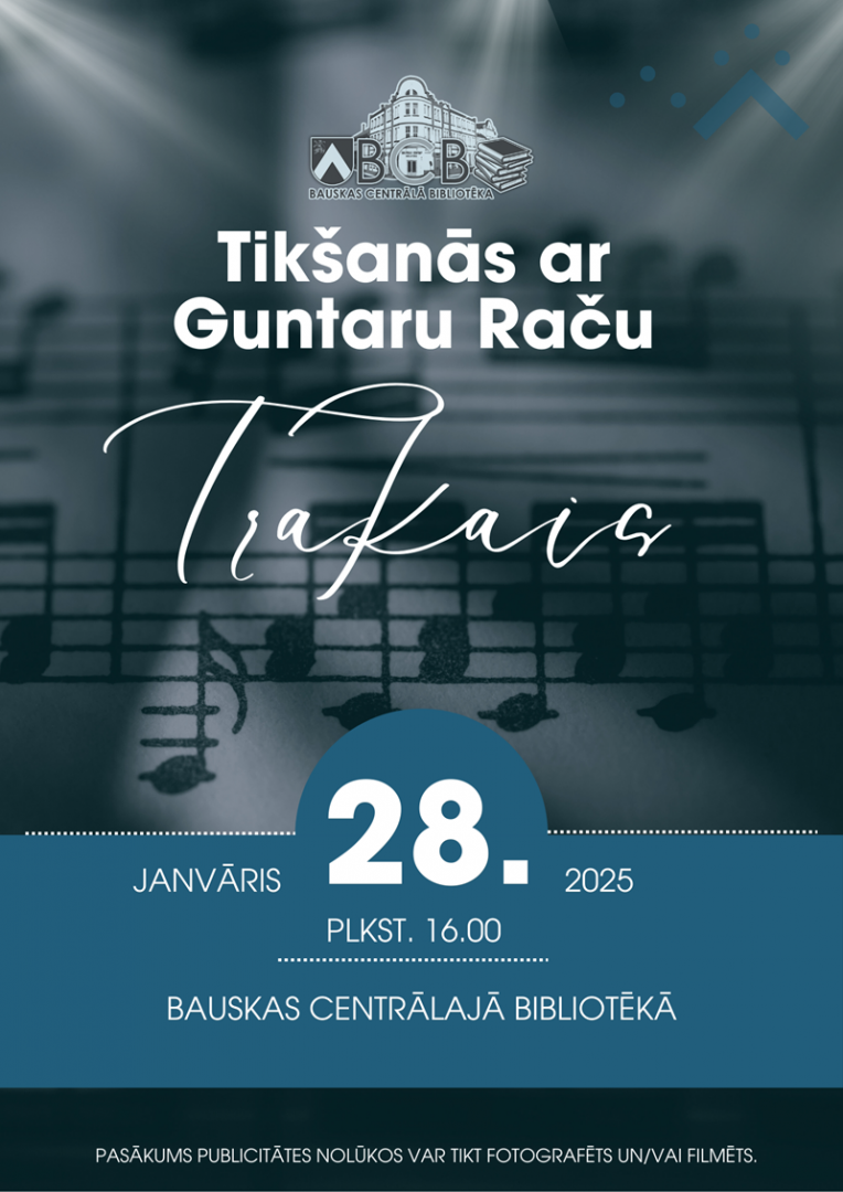 2025. gada 28. janvārī plkst. 16.00 būsiet gaidīti Bauskas Centrālajā bibliotēkā, lai tiktos ar mūziķi, dzejnieku un grāmatas "Trakais" autoru Guntaru Raču.