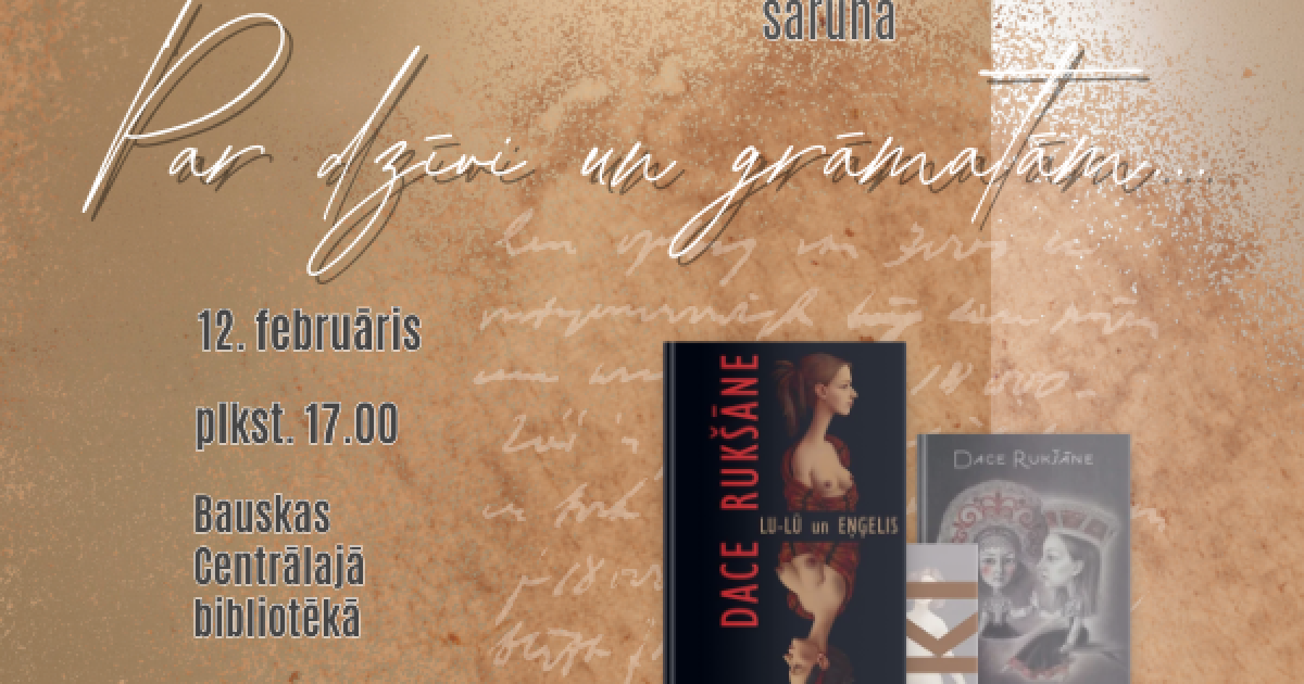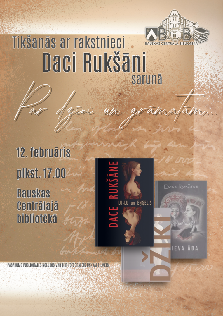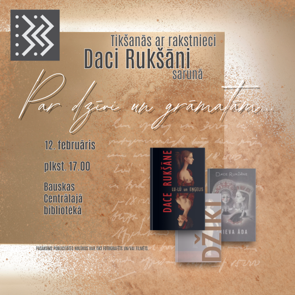 2025. gada 12. februārī plkst. 17.00 literatūras mīļotāji tiek aicināti uz Bauskas Centrālo bibliotēku, lai tiktos ar rakstnieci Daci Rukšāni sarunā "Par dzīvi un grāmatām".