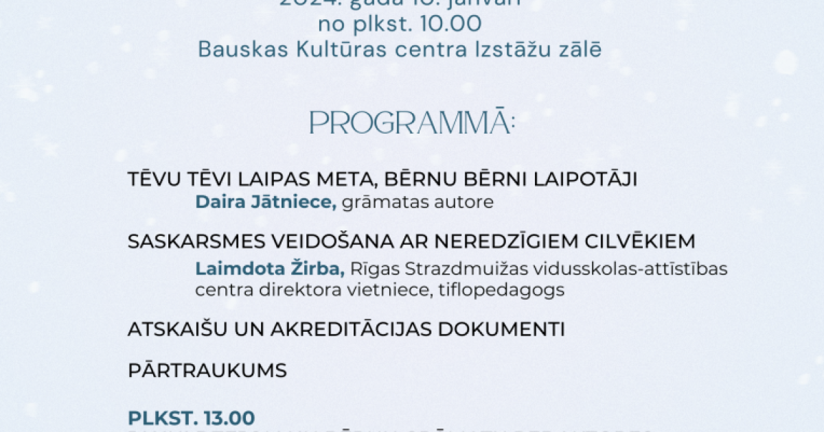 Bauskas Centrālā bibliotēka organizē Bauskas novada bibliotekāru semināru, kas norisināsies 2024. gada 10. janvārī no plkst. 10.00 Bauskas Kultūras centra Izstāžu zālē.