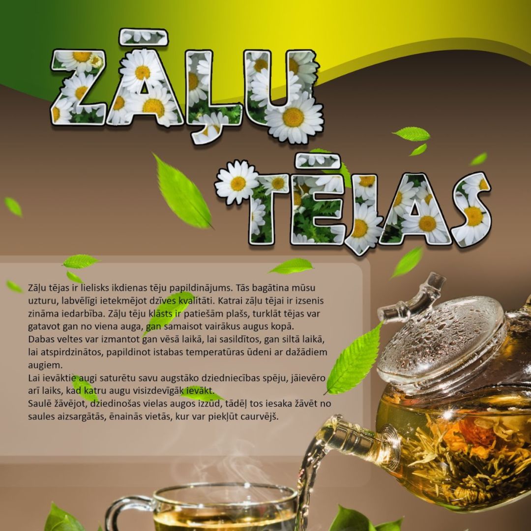 Izstādē apkopota informācija par augu (nātre, māllēpe, meža zemene, pļavas āboliņš, kumelīte, piparmētra, liepzieds, upene, smiltsērkšķis) izmantošanu veselības stiprināšanai, labāko ievākšanas laiku, kā arī tēju pagatavošanas receptēm.