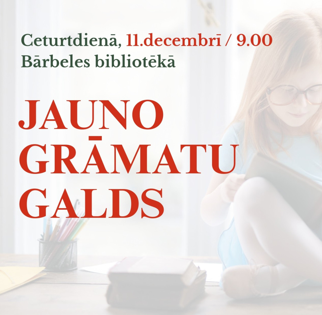 2025. gada 11. decembrī Bārbeles pagasta bibliotēkā no plkst. 9.00 - Jauno grāmatu galds!