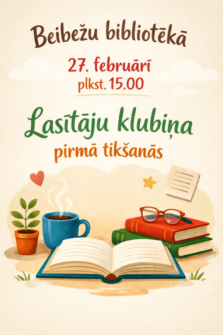 2026. gada 27. februārī plkst.15.00 Beibežu bibliotēka aicina uz lasītāju klubiņa pirmo tikšanos. Laipni gaidīti visi grāmatmīļi, pavadīsim jauku pēcpusdienu sarunās un viedokļu apmaiņā!