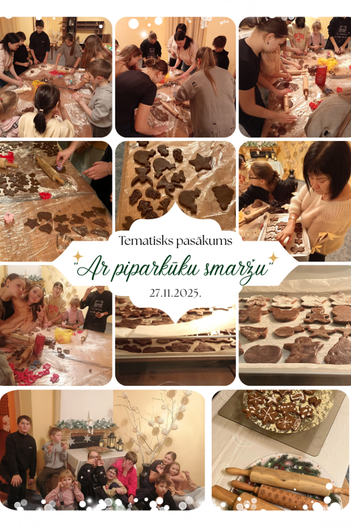 Otrajā daļā visi  devās uz kultūras nama mazo zāli, lai iegrimtu piparkūku gatavošanas burvībā. Kopā ar bērniem tika pārrunāti drošības noteikumus, jo bija jādarbojas ar krāsni un asiem priekšmetiem (nazis, šķēres, formiņas). Bērni ar prieku rullēja mīklu un ar formiņu palīdzību izspieda cepumiņus. Kad tas bija izdarīts, bērni ar pieaugušo palīdzību lika tās krāsnī. Kamēr viss cepās, bērni devās laukā izbaudīt ziemas priekus, jo tieši šajā rītā bija uzsnidzis sniegs, kas pasākumam deva ziemīgāku un svinīgāku sajūtu. Kad piparkūkas bija izceptas, bērni varēja tās izrotāt ar glazūru. Kopā tika pavadīts patīkams un sirsnīgs laiks.