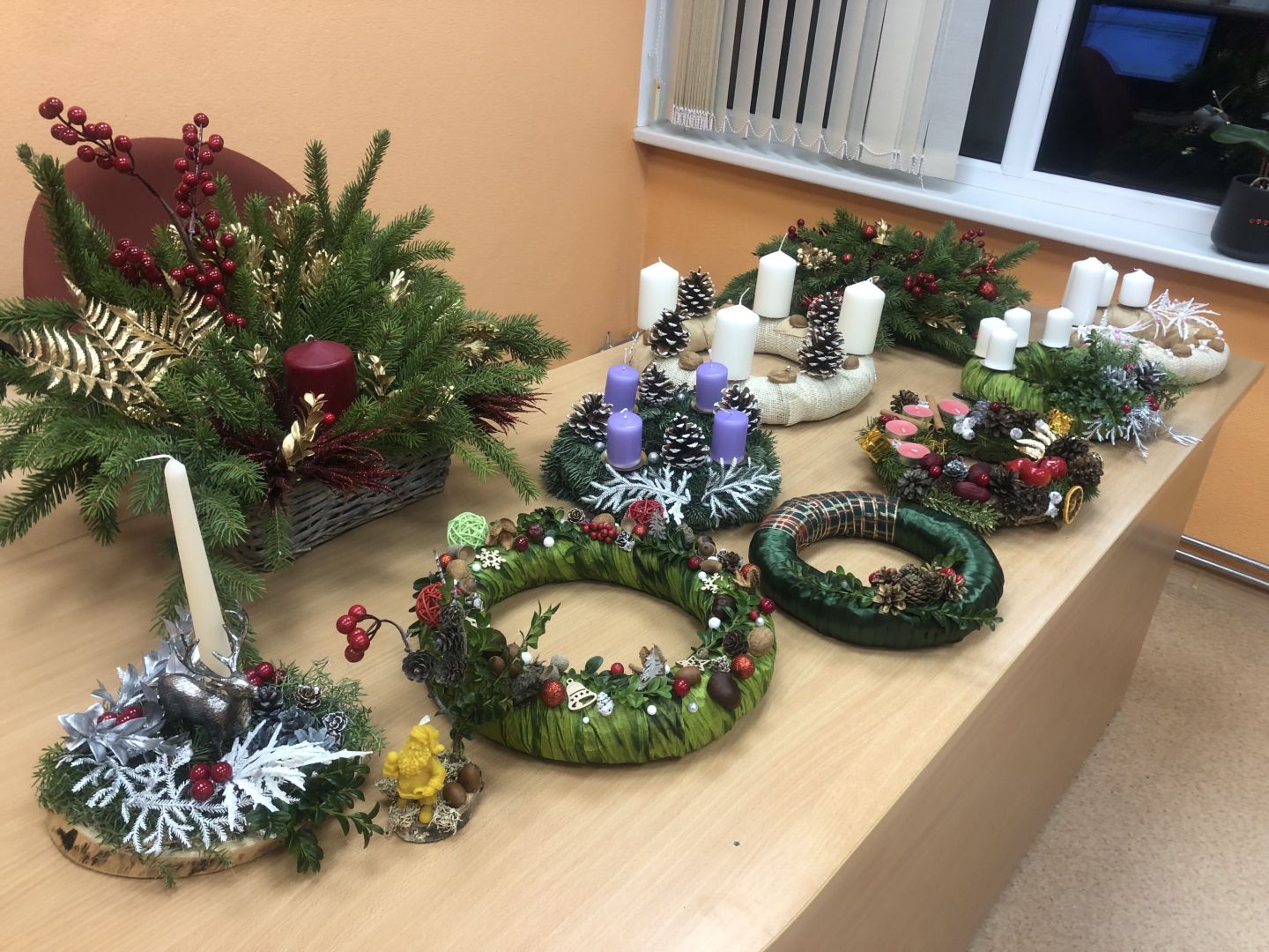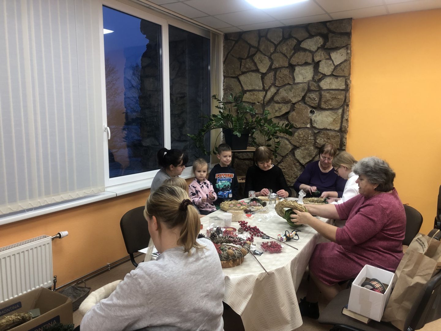 Darbnīcas laikā fonā skanēja klusās Ziemassvētku melodijas, kas piešķīra vakaram īpašu svētku priekšvakara sajūtu. Telpu piepildīja skuju aromāts, sveču mirdzums un radoša līdzdalība – katrs dalībnieks, iedvesmojoties no dabas materiāliem un savas iztēles, radīja unikālu darbu, kas Adventes laikā rotās mājas un sirdis.