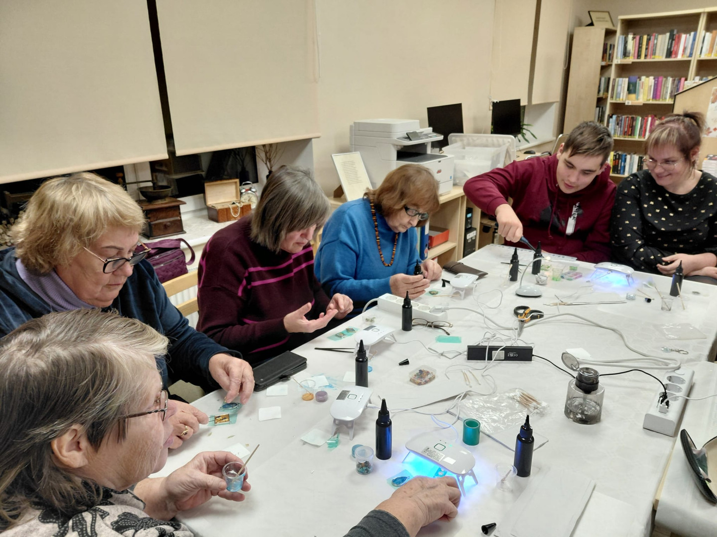 2025. gada 28. novembra pēcpusdienā Jaunsaules bibliotēkā valdīja rosība. Agitas Jaudzemas vadītajā meistarklasē nodarbības dalībnieki iepazina epoksīda sveķu maģiskās pārvērtības.