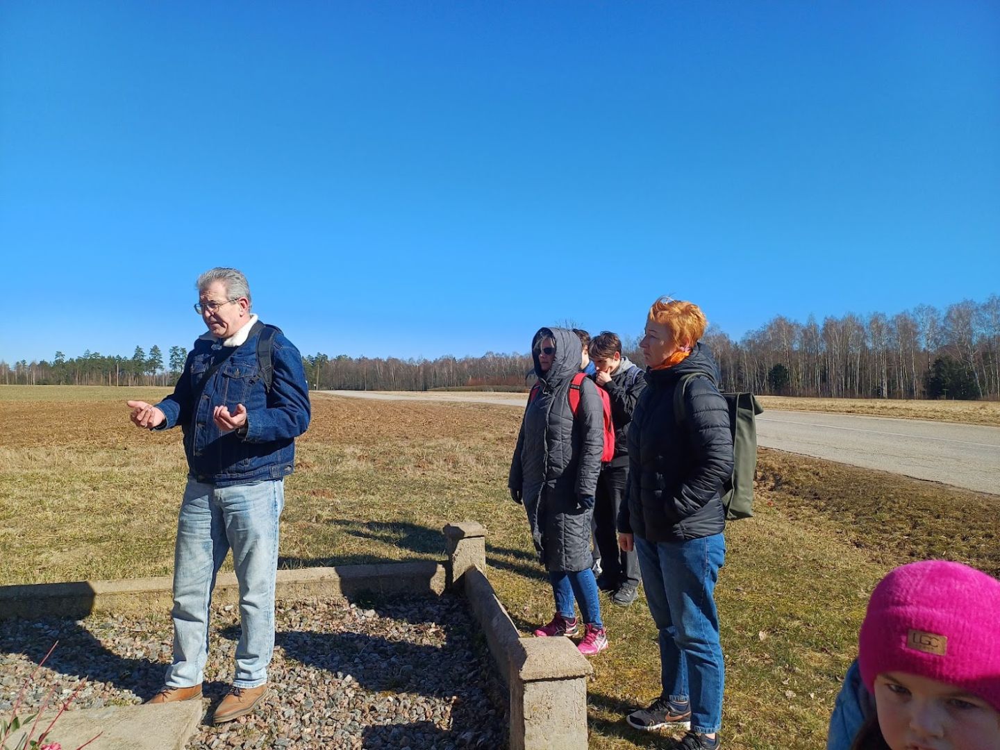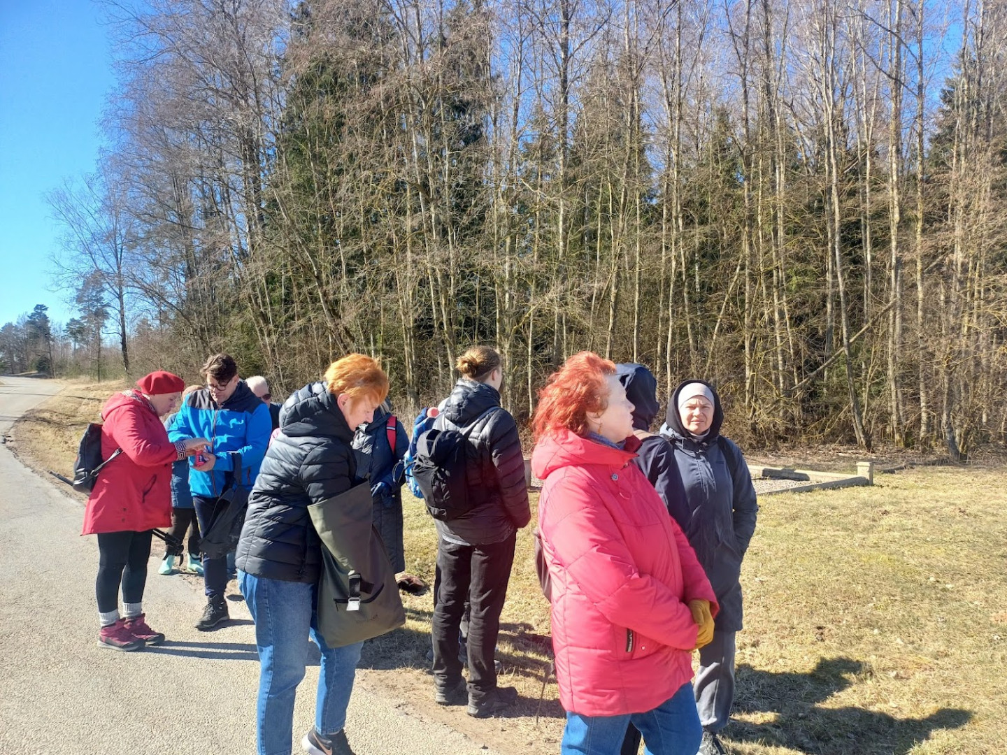 Šī pavasara pirmajā pārgājienā dalībnieki devās cauri Iecavai pa Baldones ielu un tālāk pa Baldones šoseju. Pa ceļam apskatot atjaunināto bijušo Iecavas pamatskolas ēku, kurā tagad iekārtots moderns sociālais centrs. Piestāts pie pieminekļa, kas veltīts cīnītājiem par Latvijas brīvību, 2. robežapsardzības pulka karavīriem. Aizagājušā gadā, biedrības Arhīvs rosināta un ar Bauskas novada līdzfinansējuma atbalstu, piemiņas vieta tika atjaunota. Te vēsturisko stāstos dalījās pārgājiena dalībnieks, Bauskas muzeja Vēstures nodaļas vadītājs Raitis Ābelnieks.