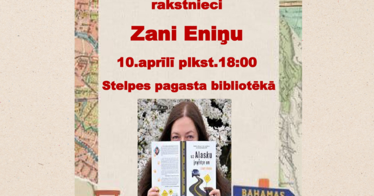 2025. gada 10. aprīlī plkst. 18.00 Stelpes pagasta bibliotēkā norisināsies tikšanās ar ceļotāju un rakstnieci Zani Eniņu.