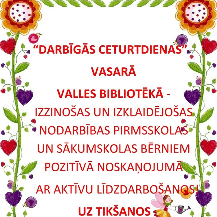 Valles bibliotēka ceturtdienās aicina pirmsskolas un sākumskolas vecuma bērnus uz izklaidējošām un izzinošām nodarbībām bibliotēkā.