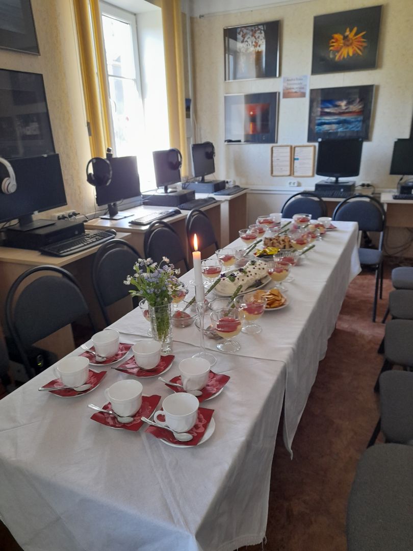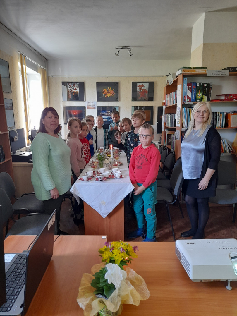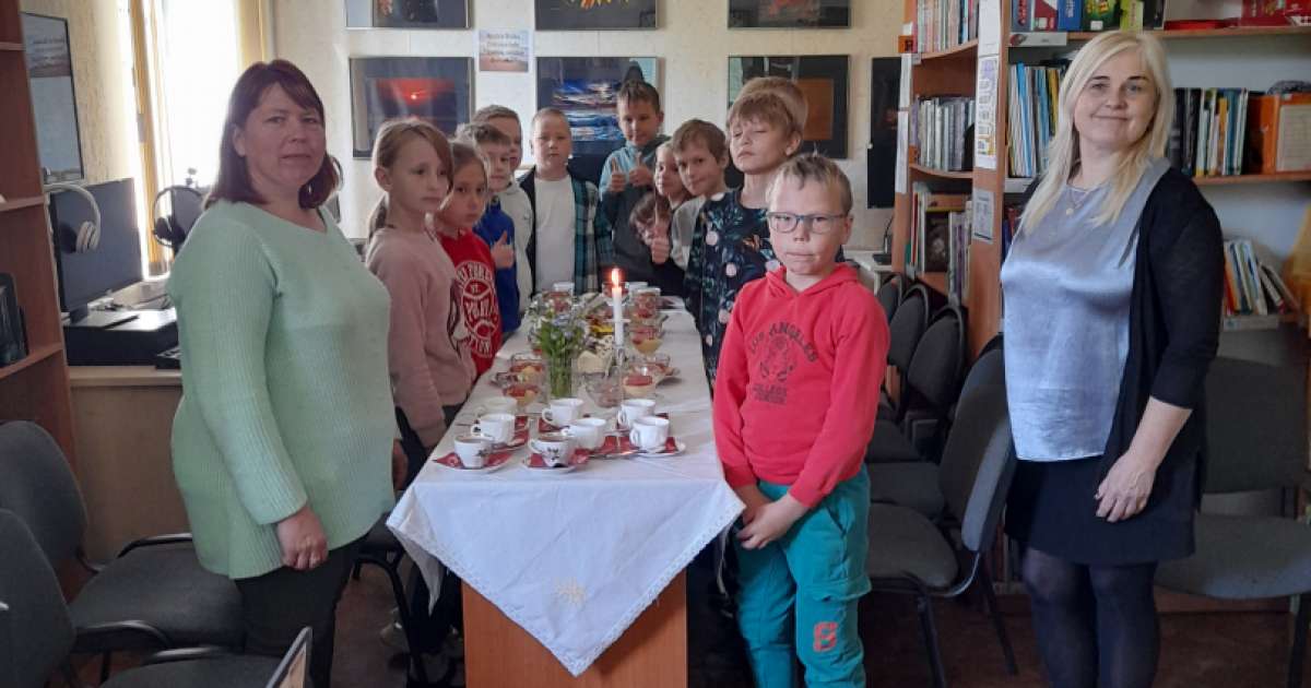 2025. gada 9. maijā Vecsaules bibliotēkā uz tematisku pasākumu "Labi dzīvot Vecsaulē", pie balti klāta galda, pulcējās Vecsaules pamatskolas 3. klases skolēni ar skolotāju Daci Sauso.