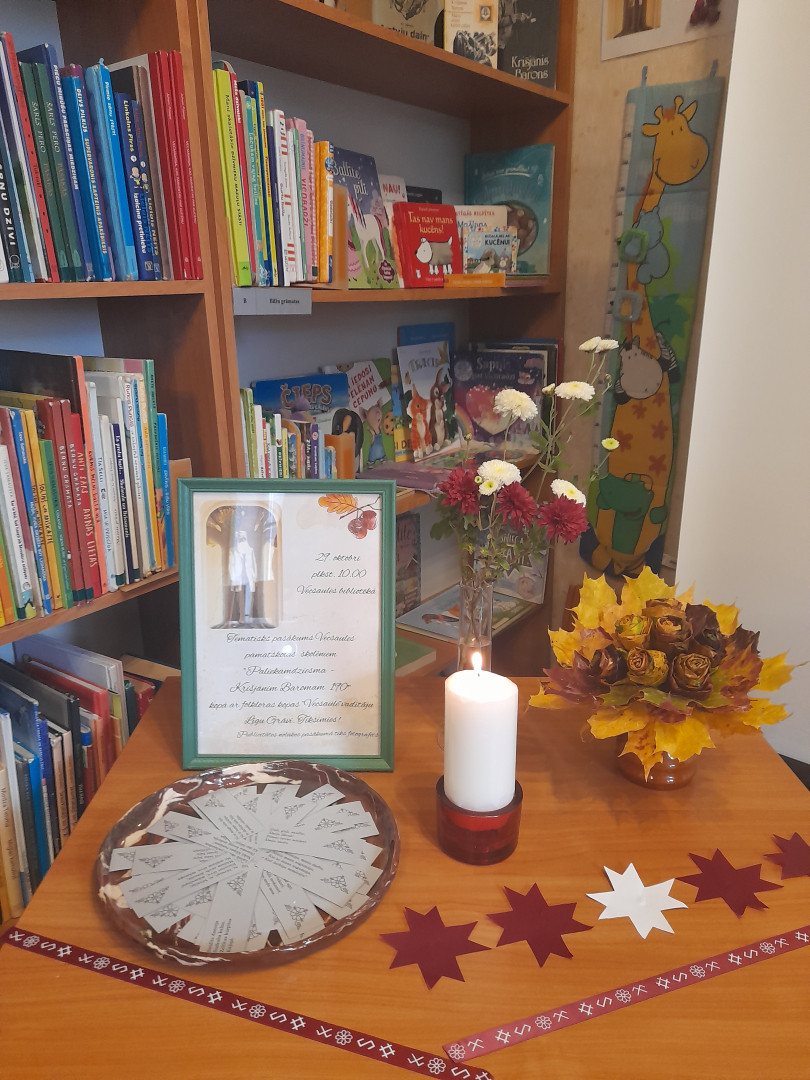 2025. gada 29. oktobrī Vecsaules bibliotēkā pulcējās Vecsaules pamatskolas 4. un 5. klases skolēni, lai pieminētu Dainu tēvu Krišjāni Baronu 190. dzimšanas dienā. Bērni tika iepazīstināti ar Krišjāņa Barona dzīves gājumu, viņa devumu latviešu tautasdziesmu vākšanā, kārtošanā, rediģēšanā un izdošanā, un UNESCO Pasaules atmiņas sarakstā iekļauto Dainu skapi. Kokles pavadījumā skanēja latviešu tautasdziesmas folkloras kopas "Vecsaule" vadītājas Līgas Grāves izpildījumā. Godinot Krišjāni Baronu jubilejā, kopīgi tika nodziedāta viņa mīļākā tautasdziesma "Tumša nakte, zaļa zāle".
