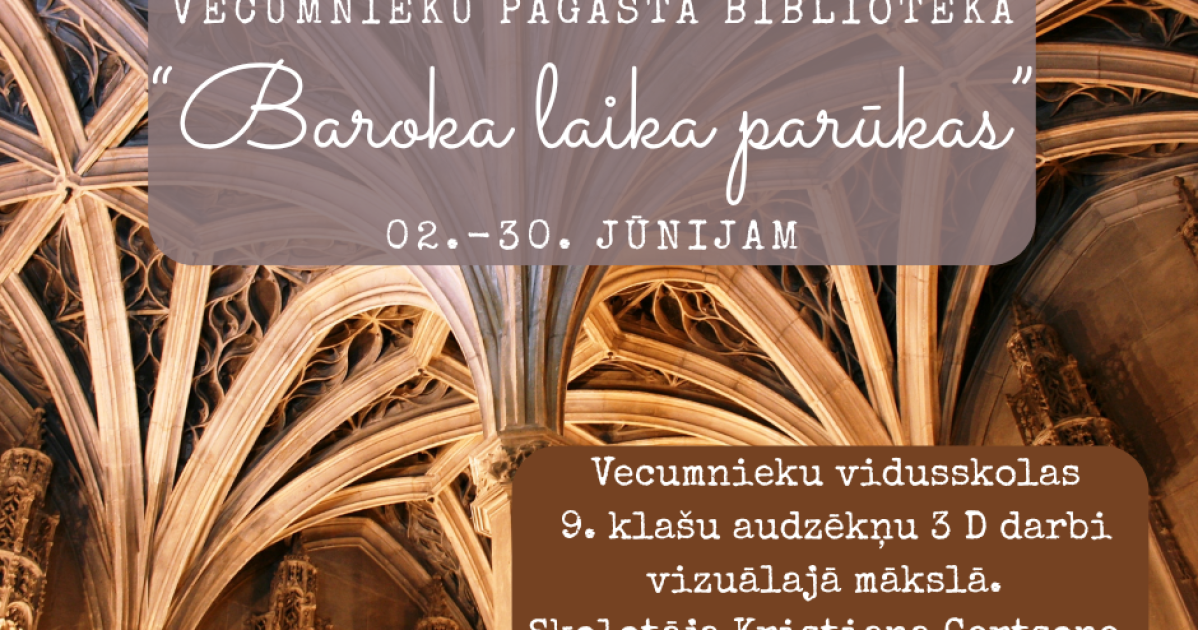 No 2025. gada 2. jūnija Vecumnieku bibliotēka aicina apmeklēt izzinošu, radošu un vizuāli pārsteidzošu izstādi "Baroka laika parūkas". Sadarbībā ar Vecumnieku vidusskolas skolotāju Kristianu Gertsoni izliktas 9. klašu audzēkņu vizuālās mākslas stundās radītās, katram savā versijā izveidotās, 3 dimensiju baroka stila galvas rotas.