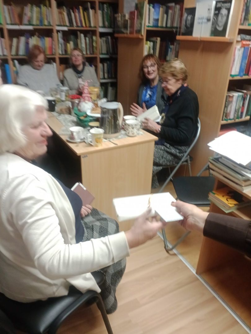Ziemassvētkus ieskandinot, tika izlozēta jauna grāmata, kura jāizlasa līdz 10. janvārim, kad būs nākošā tikšanās reize. Lai interesantāk - tā tika iesaiņota necaurspīdīgā iepakojumā un to kā dāvanu katrs dalībnieks izlozēja, atvēra mājās un dalījās ar emocijām pēc tam.