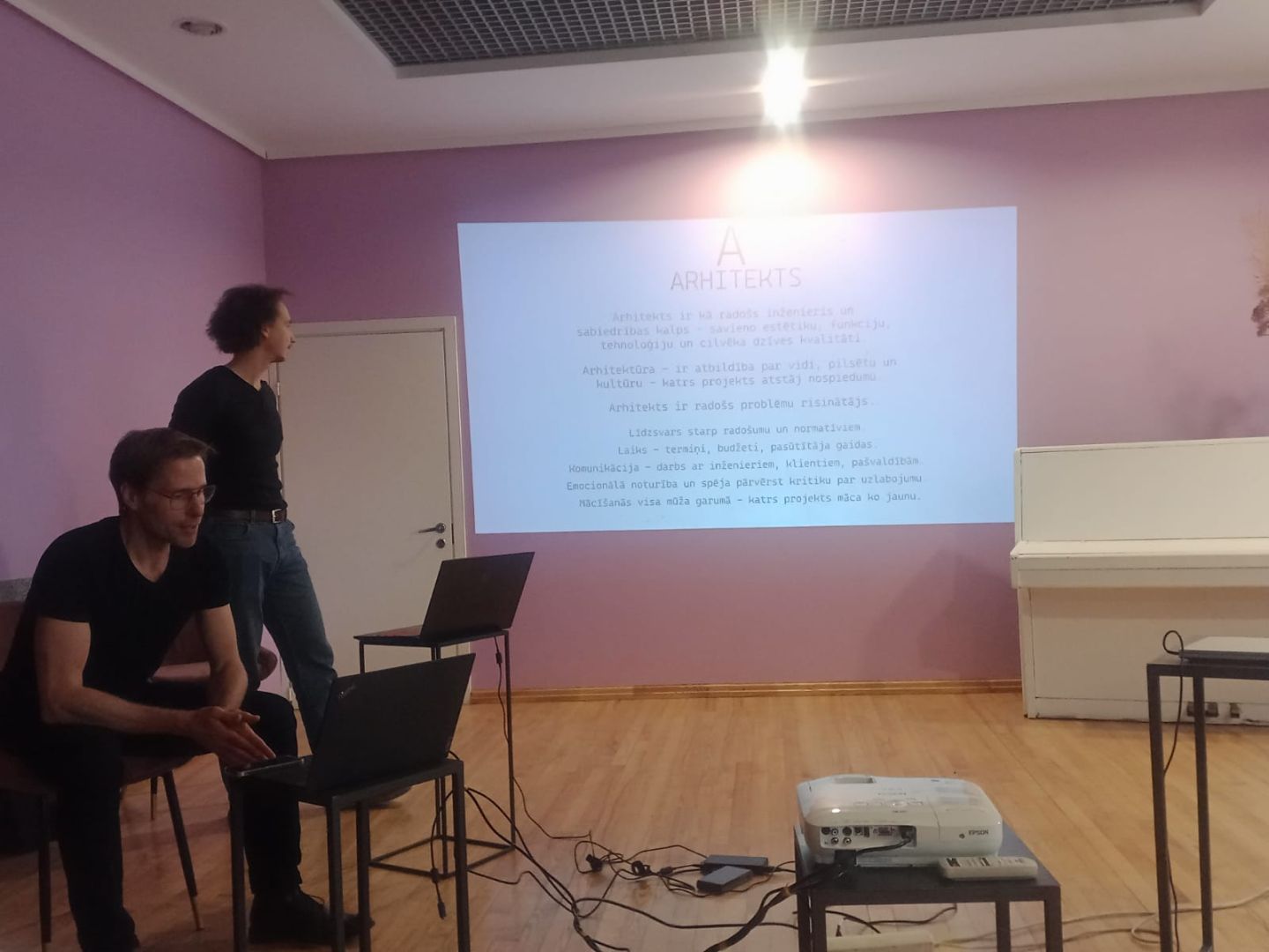 Vecumnieku bibliotēka 2025. gada 13. oktobrī, Pasaules arhitektu dienu atceroties, aicināja uz tikšanos ar novadniekiem – Valdi Onkeli un Matīsu Gertsonu, kuri stāstīja par arhitekta profesiju. Sanākušie tika iepazīstināti ar iespējām par izglītību un turpmākajiem arhitekta karjeras veidiem. Izprotami tika izstāstīts par arhitektūras procesu un kādas ir tā iezīmes mūsdienās. Tika apgūti tādi pamatprincipi kā būvniecības atkritumi, aprites ekonomika, BIM, vēsturiskā mantojuma saglabāšana un tas, kā ēku celtniecību ietekmē cilvēka mērogs. Liels ieguvums bija profesionāļu dotā iespēja salīdzināt un diskutēt, kādas ēkas bija pirms un kādas pēc pārbūvēm, ievērojot pamatnosacījumu, ka ēkai ir jāfunkcionē.