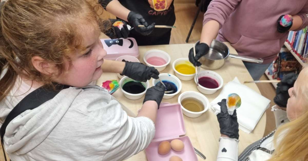 2025. gada 16. aprīlī Zālītes bibliotēkā notika radošā darbnīca bērniem "Lieldienu olu krāsošana".