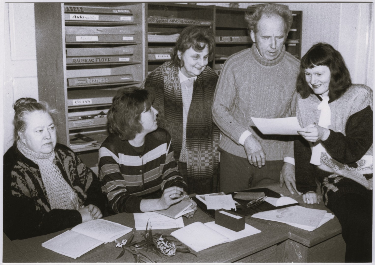 Literātu apvienības tikšanās Bauskas rajona Centrālā bibliotēkas lasītavā 1995. gadā.