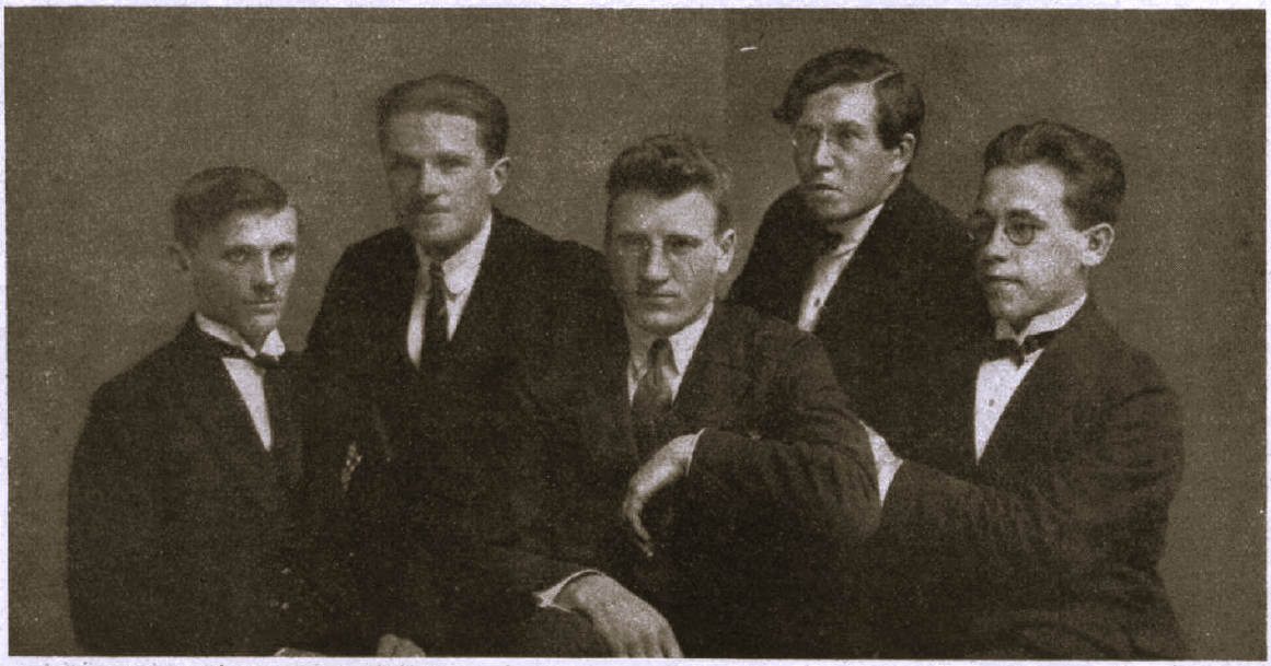 Jauno dzejnieku grupa, vidū Valdemārs Nakels (Voldemārs Naķelis).