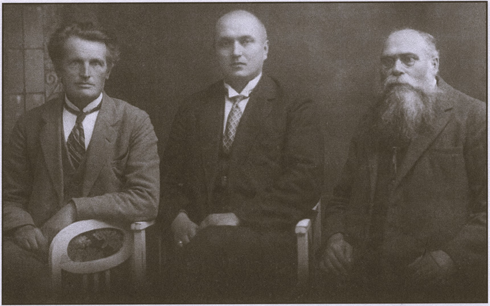 Foto palielinājumā Bauskas apriņķa valdes pārstāvji: "Bauskas Vēstneša" redaktori Mārtiņš Šimiņš (no labās), R. Kuikulītis un J. Doniņš 1928. gadā.