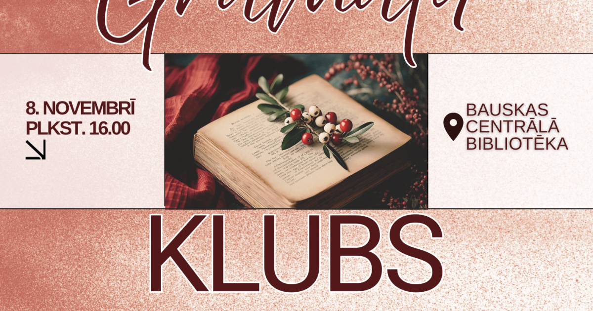 2025. gada 8. novembrī plkst. 16.00 literatūras mīļotāji aicināti tikties Grāmatu klubā Bauskas Centrālajā bibliotēkā.