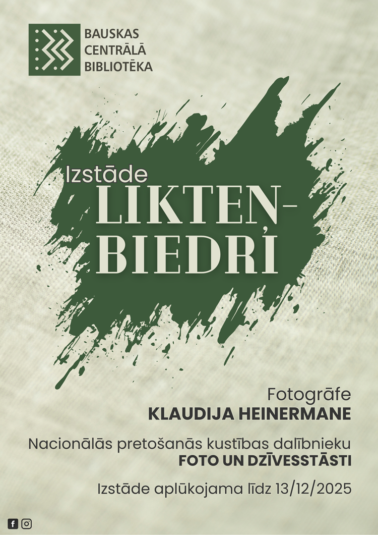 Bauskas Centrālajā bibliotēkā skatāma fotogrāfes un portretu autores Klaudijas Heinermanes izstāde "Likteņbiedri", kas atklāj astoņu Nacionālās pretošanās kustības dalībnieku dzīvesstāstus.