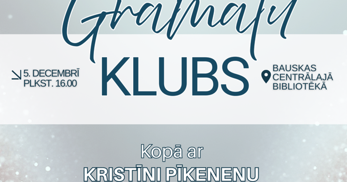 2025. gada 5. decembrī plkst. 16.00 grāmatu mīļotāji aicināti tikties Grāmatu klubā Bauskas Centrālajā bibliotēkā.