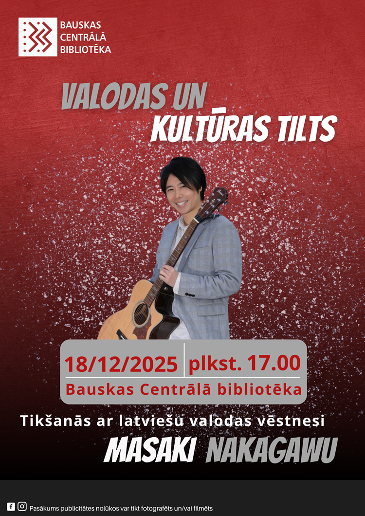 2025. gada 18. decembrī plkst. 17.00 Bauskas Centrālā bibliotēka aicina uz pasākumu "Valodas un kultūras tilts. Tikšanās ar latviešu valodas vēstnesi Masaki Nakagawu".